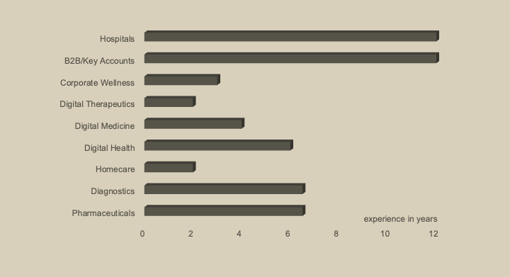 My trait of going deeper in whatever I do has motivated me to explore all the healthcare industry segments. Beginning as a sales rep and progressing to nationwide institutional sales management at Pharmaceuticals, I gained a deep understanding of doctor psychology. In diagnostics, I mastered key account management. In 2017-18, recognizing the global shift toward digital health, I pivoted toward E-Health, enhancing my skills in corporate wellness and homecare. Over the past three years, I've focused exclusively on health-tech, including SaaS, DTx, and Data Science